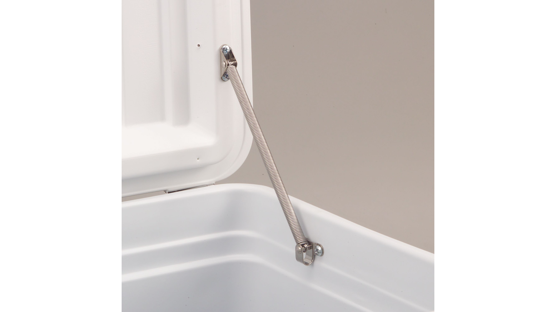 • La sangle du couvercle à ressort en acier inoxydable résistant à la rouille verrouille le couvercle en place lorsqu’il est ouvert pour éviter les fermetures accidentelles
